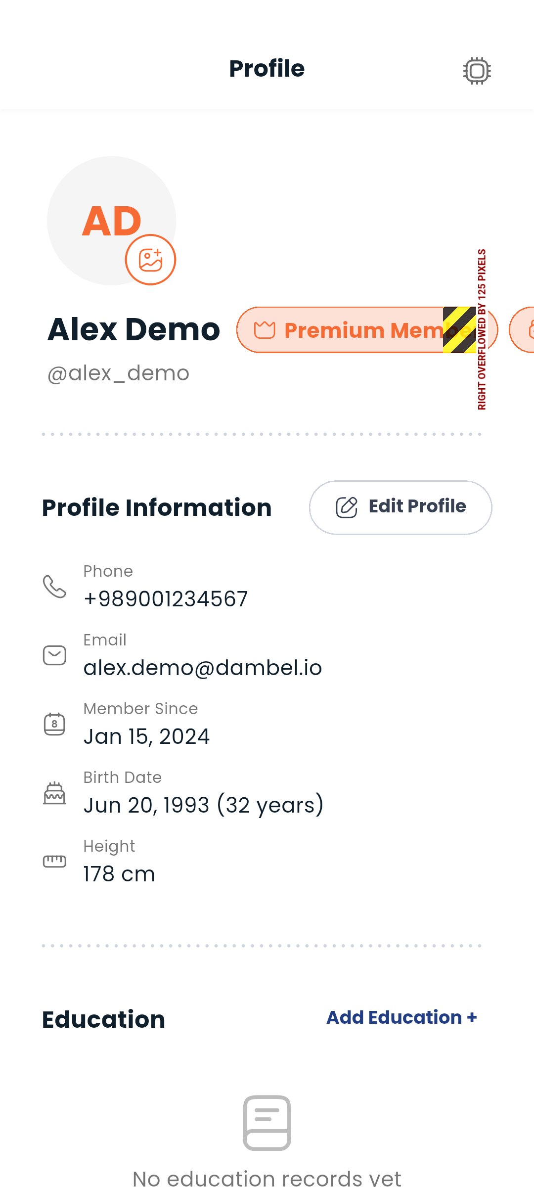 When someone views your profile — a trainer browsing athletes, or an athlete checking a trainer — they see your name, photo, roles, bio, education, and championships. Your contact details (phone/email) are kept private.
