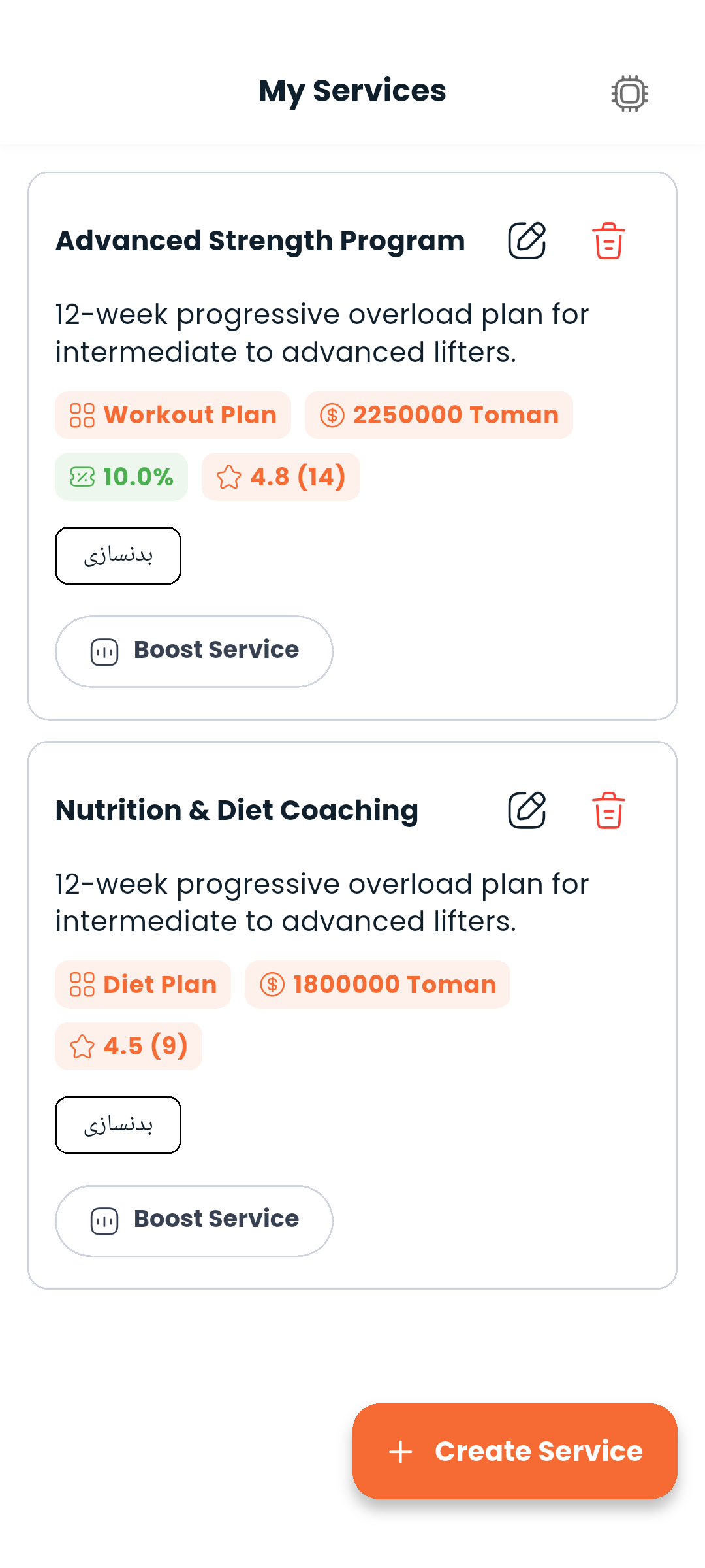 Looking for a trainer? Search, browse their profiles, and subscribe to a service right here in the app.