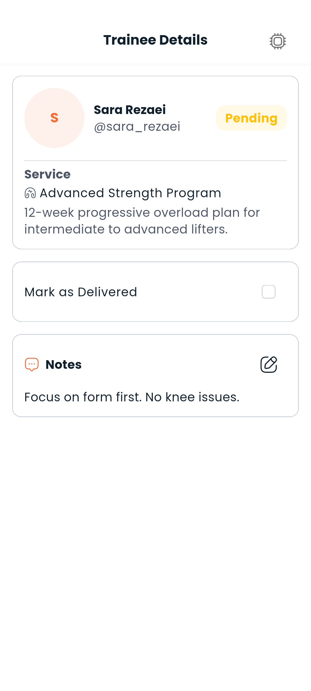 Go to Training → Trainees to see all your current clients. Tap any trainee to: