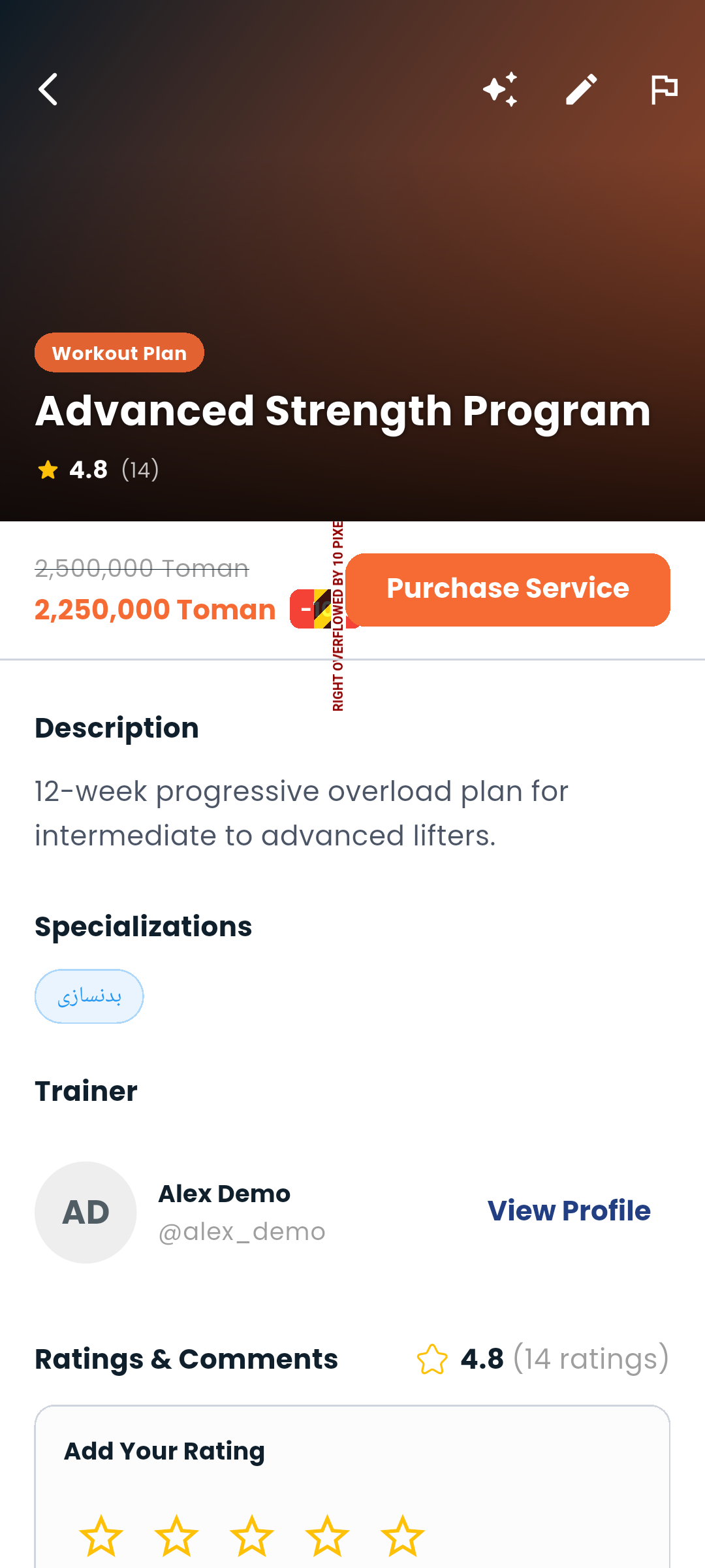 On a trainer's profile, tap a service to see its full details. When you're ready: